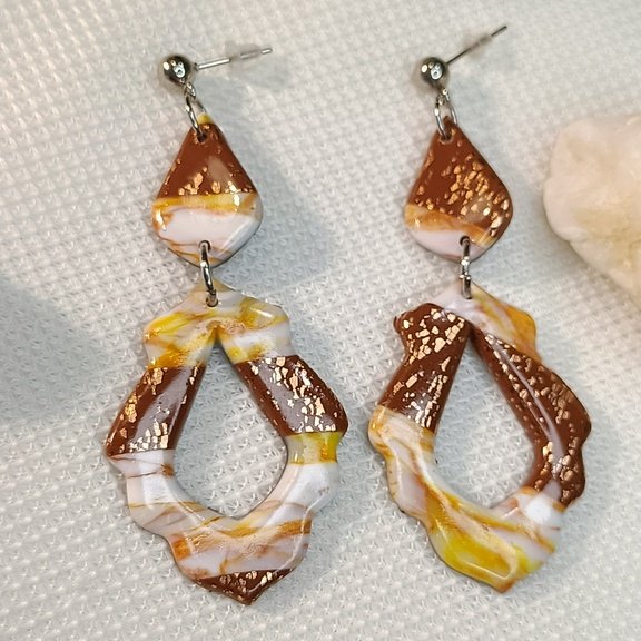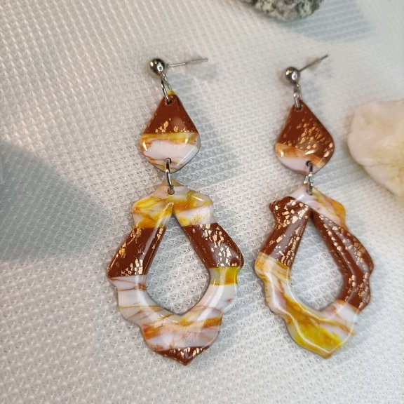 Boucles d’oreilles marbrées dorées en pâte polymère – Collection « DISTINGUEE »