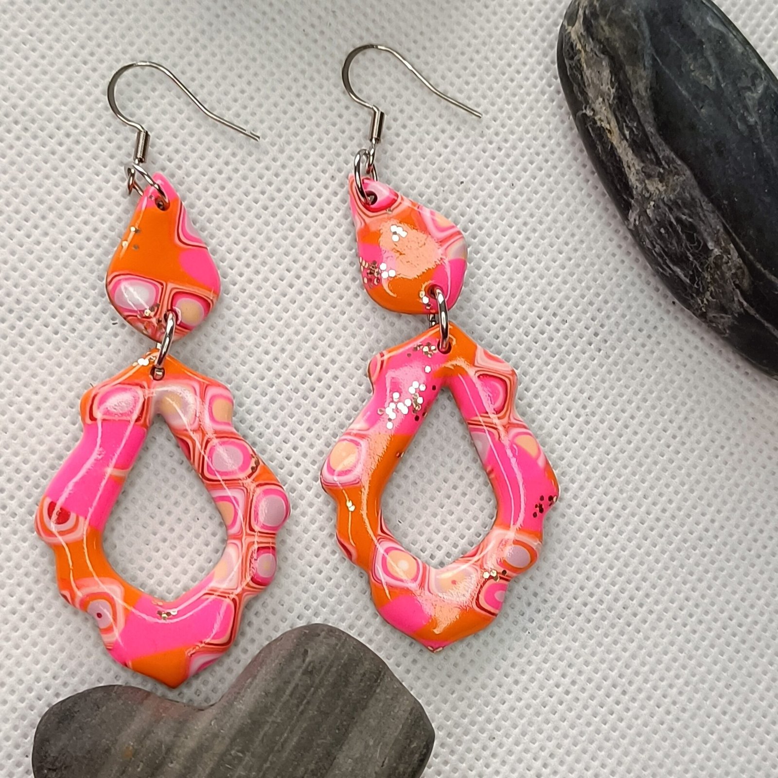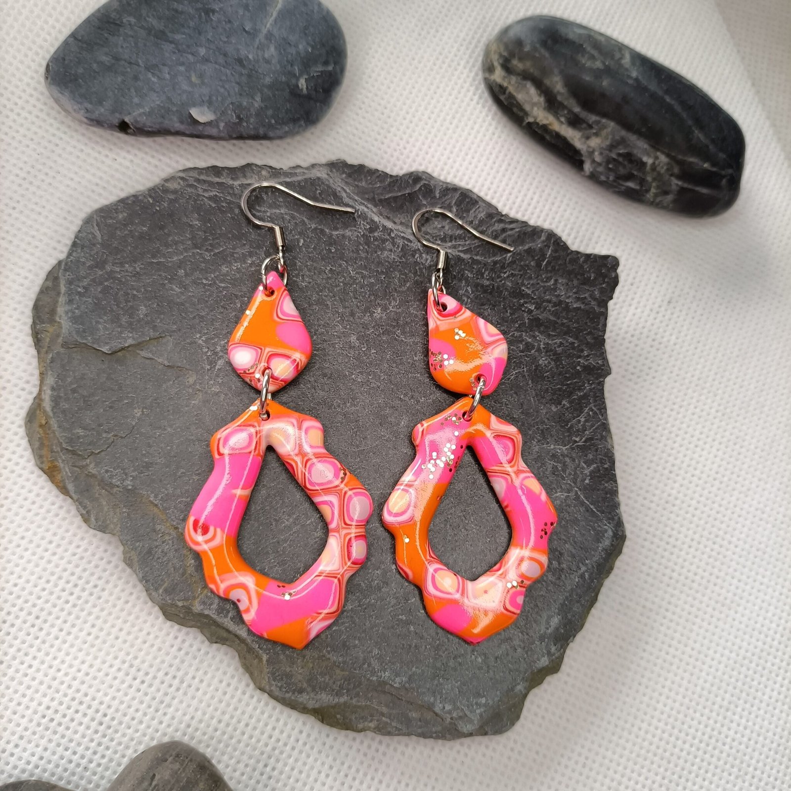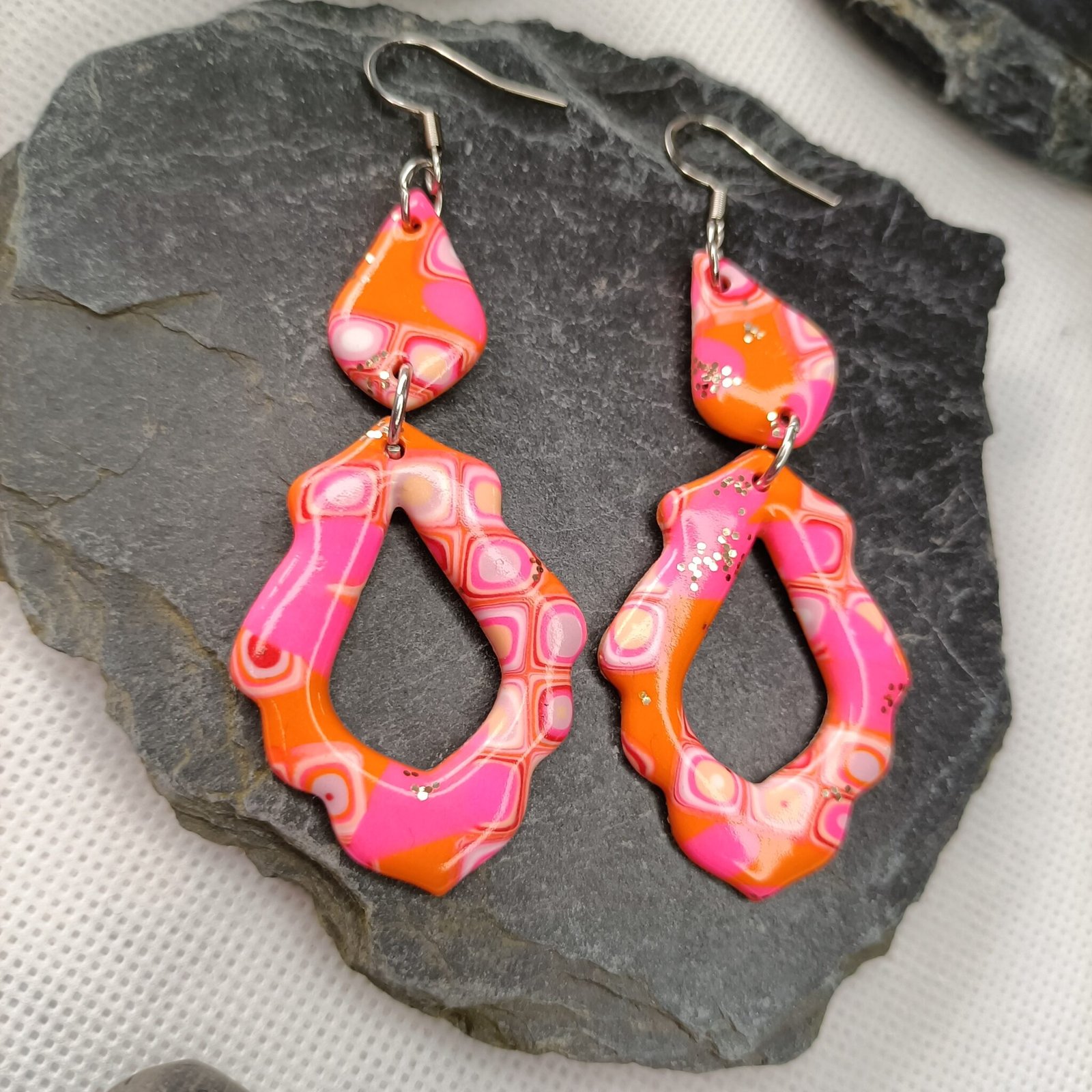 Boucles d’oreilles orange et rose en pâte polymère – Collection « DISTINGUEE »
