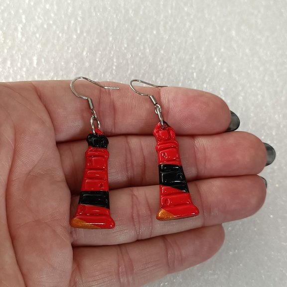 Description : Découvrez mes boucles d’oreilles Phare rouge et noir en pâte polymère, des créations exclusives qui marient originalité et élégance. Chaque paire est soigneusement réalisée à la main, assurant une qualité artisanale exceptionnelle et un design unique qui vous distinguera des autres.