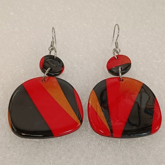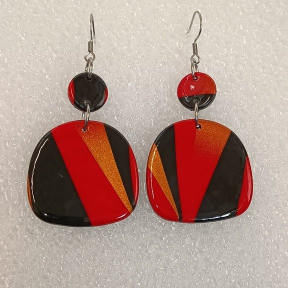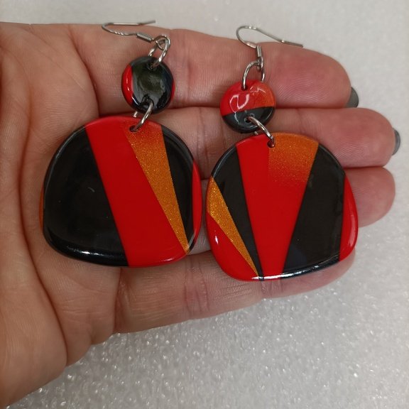 Boucles d’oreilles fantaisies artisanales Rouge fusion en Pâte Polymère – Fabrication Unique et Artisanale